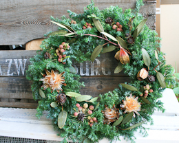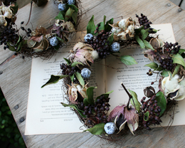 そしてsweetsightさんでは9日~14日までアンティークとフラワーのクリスマスイベントを開催中です。今回はドライとフレッシュなリースとアレンジも納品しました。