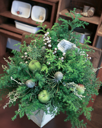 bagel choco さんの広くなったcafeスペースを貸し切らせていただき、花教室を行います。フレッシュなグリーンをベースにリンゴや実ものなど、白グリーンのクリスマスリースorミニツリーを作ります。常緑樹を使うので冬のあいだ楽しむことができます。初めての方でもお気軽にご参加下さい。