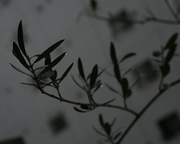 今朝はやく、ベランダのオリーブを見たらいつもと様子が、、、なになに?