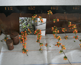 ツルウメモドキは作っている間にも少しずつ、はじけだしてました。