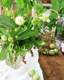 まん丸い白の花は菊の「ピンポンマム」です。いつも大福を思いだします。。。