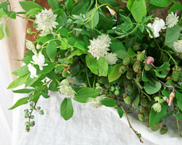 この日はやっと大好きなブルーベリーの枝が入ったので、ブラックベリーも添えて瑞々しく。