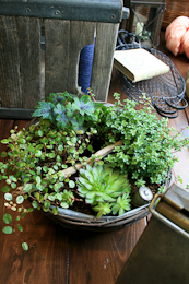写真は多肉植物の寄せ植えです。