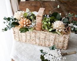 サンキライの実や、アストランチャ、クルクマ、セダム。
