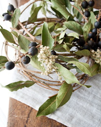 ドライのローリエリース。黒い実がオリーブの実のようでいい感じです。