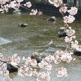 都会の真ん中なのに、白鷺(たぶん)が2羽飛んで来たり、川の石の上に亀が甲羅干ししていたり。