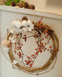お正月飾りにもなりますし、冬の間は楽しめるリースです。